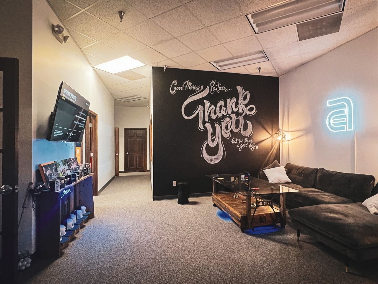 Our old office was really great in terms of office space, but we were subleasing and it didn’t allow for the creativity and projects that we were dreaming up. Videos were being done in my [Rich’s] small corner office and by the time everything was set up, you could barely see the floor. That office served its purpose for a while, but we longed for a studio where we could create pieces that had never been done before. Originally, we were looking at a completely different space that had never been used and needed to be built out a lot. After speaking with The Anderson Group, we realized that it would be wasted money. We toured Suite 101 with Greg Anderson and immediately began imagining ourselves in that space. The rest is history. They completely updated the space for us, building new walls, removing wall paper, and building a custom studio with sound proofing and special order paint. By the end of it, they made the space nearly unrecognizable from where it started.